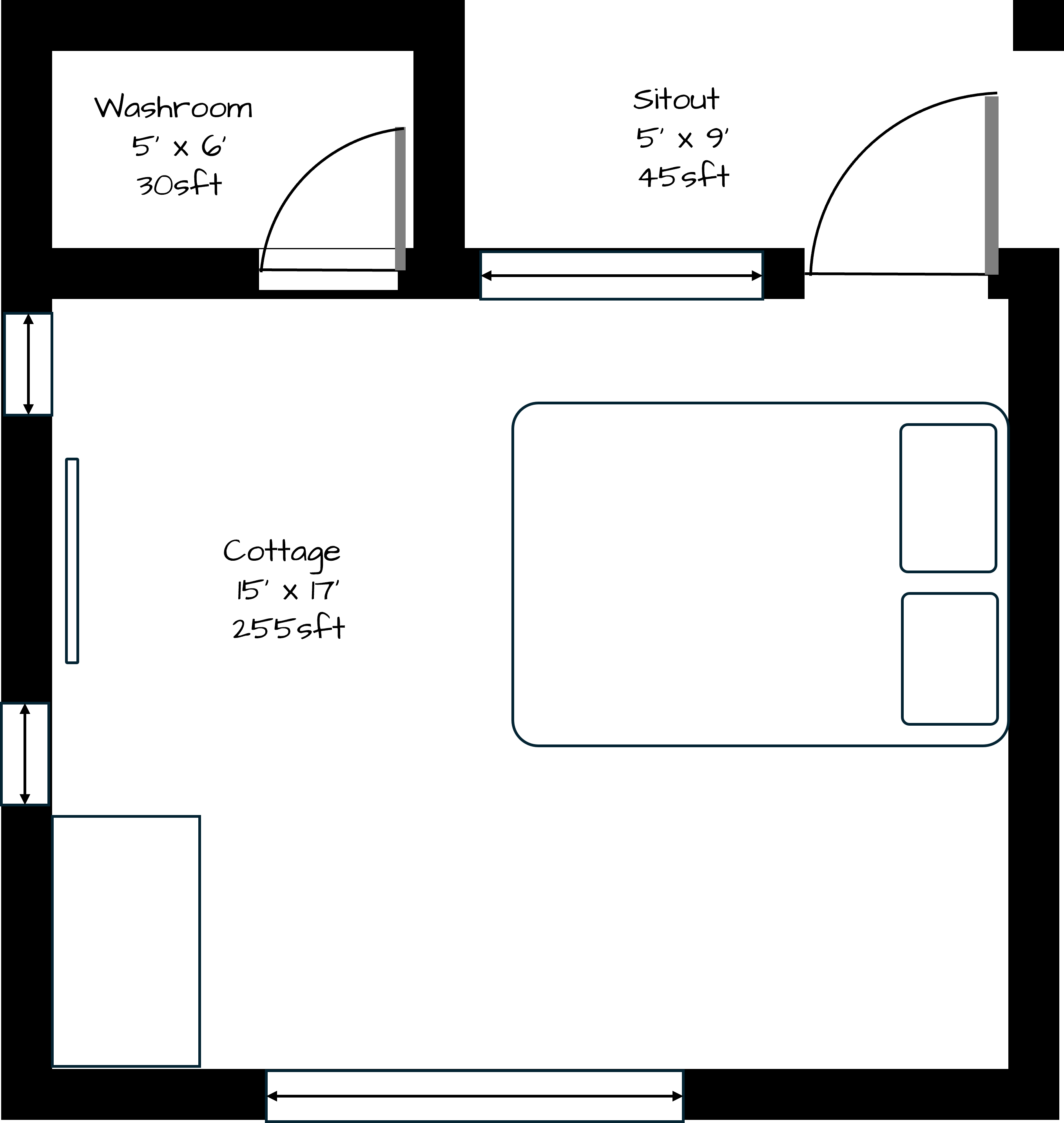 Aatma Homes main dwelling, the aatma, is a 1800+ sft oasis with just 6 logical walls. We never wanted a home with 5 bedrooms… we needed just 2. The attached washrooms are again.. open to nature like never seen before.